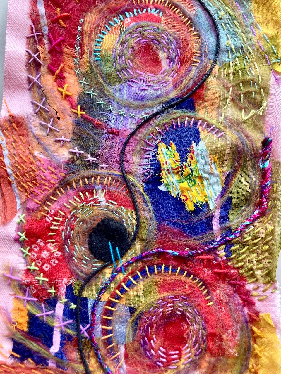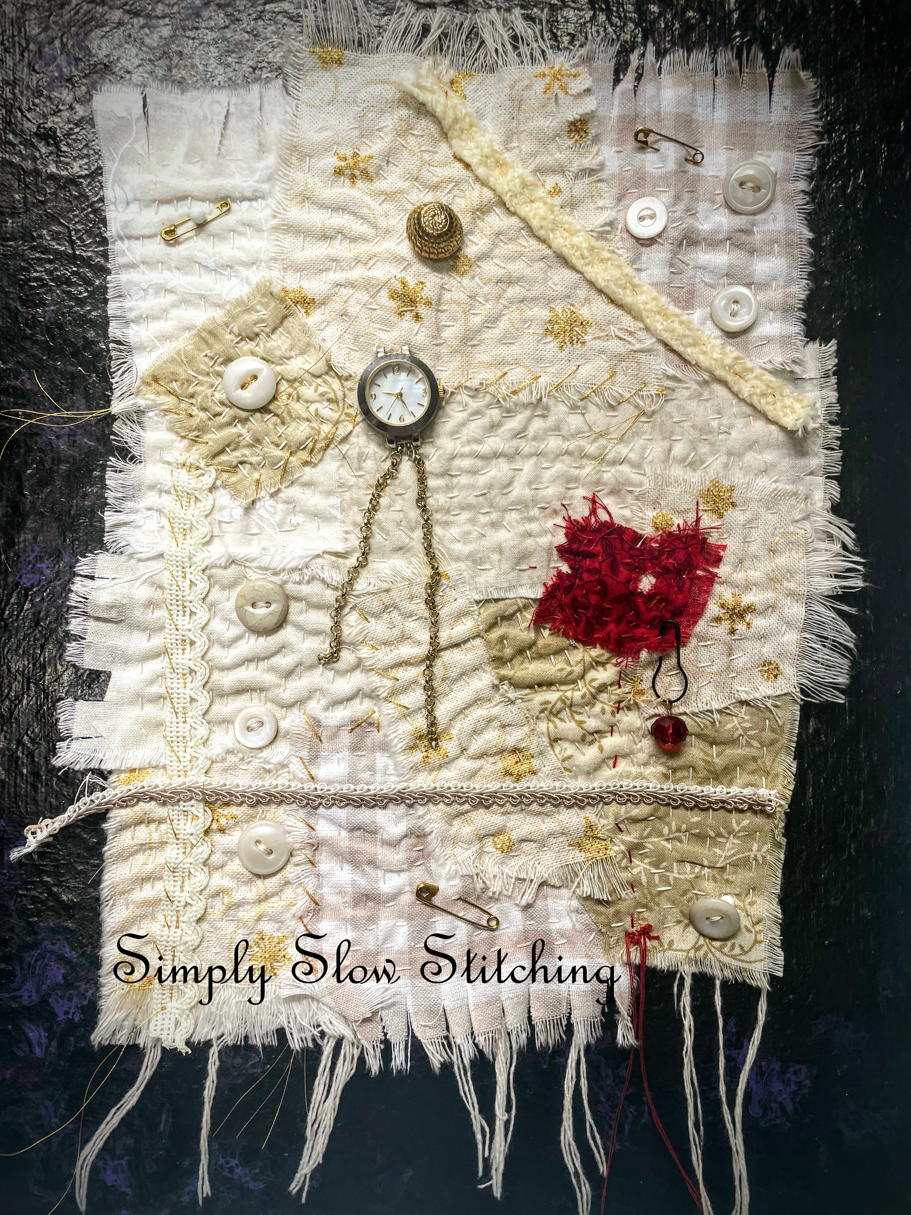 Slow stitching is a mindful craft that involves using a needle and thread to create art, rather than just mending or making a garment: